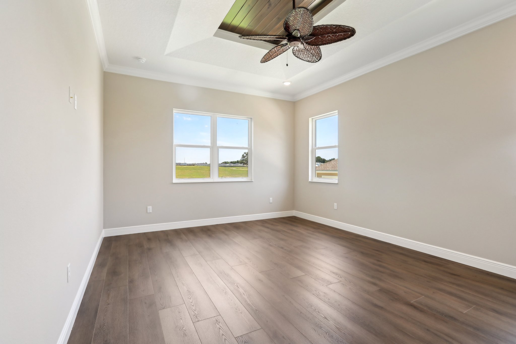 - Living Room, Kitchen, Primary Room w/ Tray Ceilings and V-Joint Southern Pine Inset